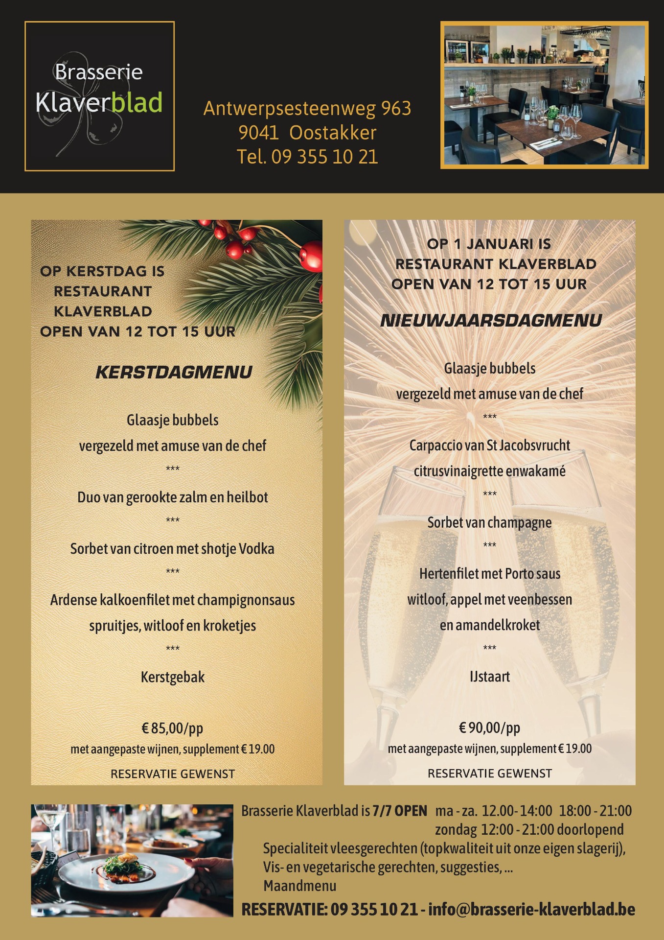 Wij zijn open op kerstdag en nieuwjaarsdag van 12u tot 15u - enkel op reservatie
